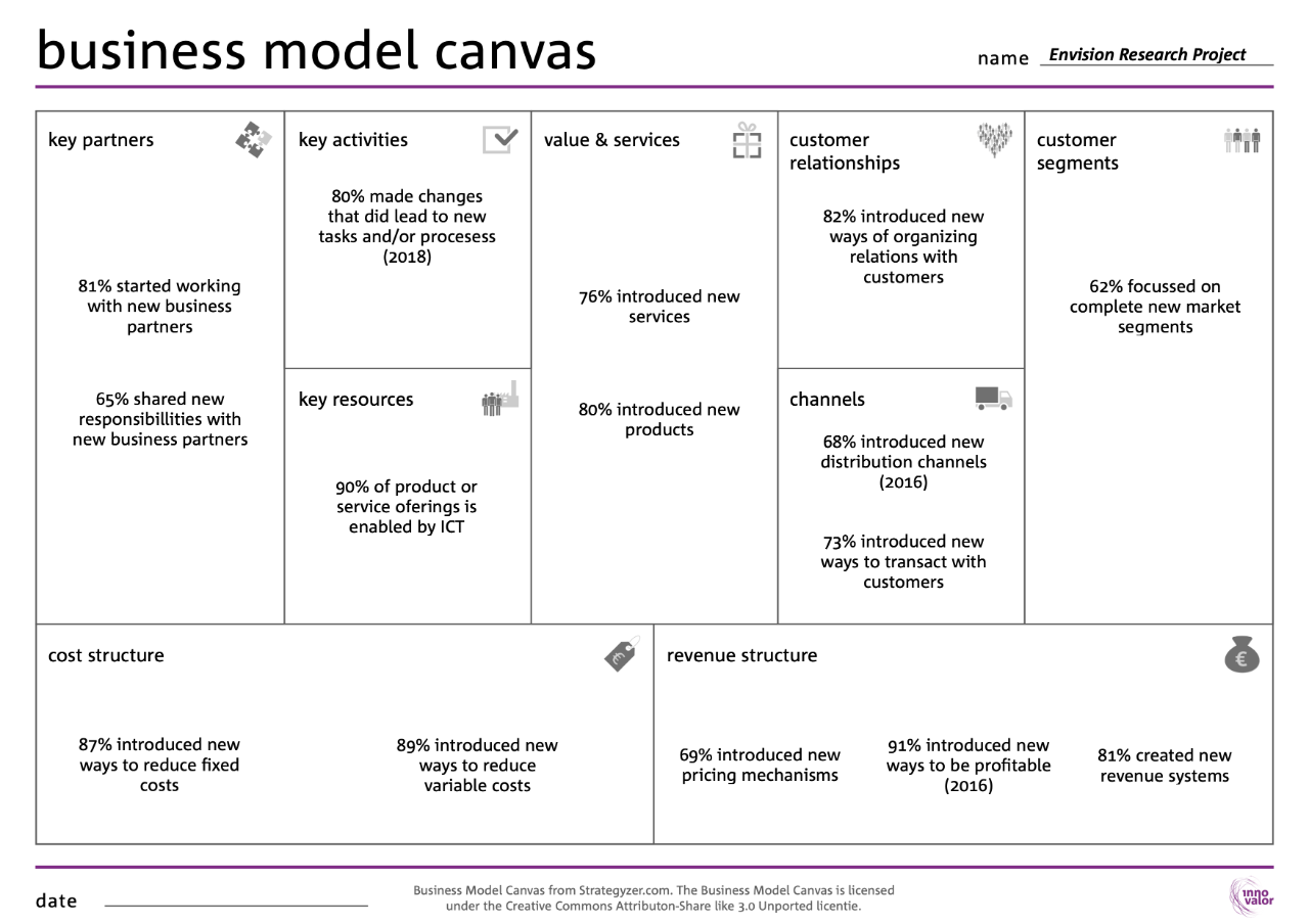 The aim was to find out if SME's want to change their Business Model (yes) and what they need to do this well. We know that tools help entrepreneurs thinking about their company in a structured way, also helping to envision different scenario's and seeing pitfalls of a plan before it is executed.