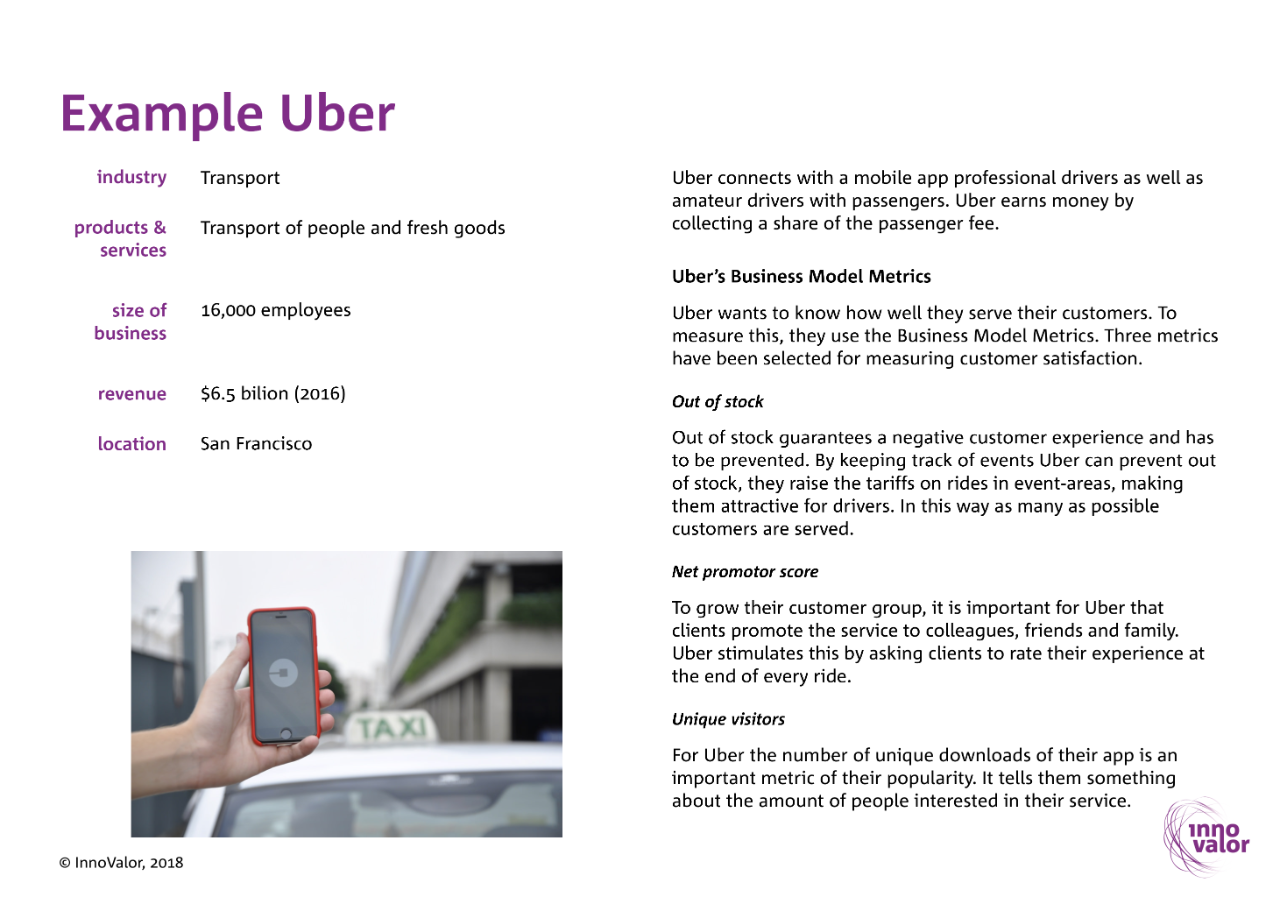 Business Model Metrics consist of a card deck with 32 metrics divided over four categories: service quality, customer satisfaction, online capability and financial viability.