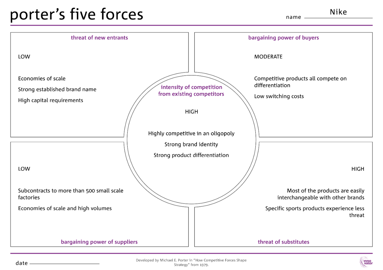 Have a look at the example as well, learn about the practical application of this tool through Porter’s Five Forces of Nike.